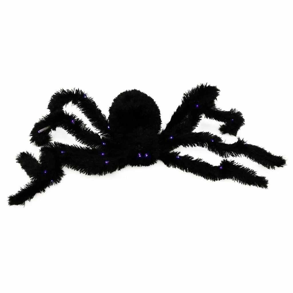 - Touch-activated decoration offers eyes and a body that light up purple, creates a web, and makes creepy echoing/wobbling spider noises and evil laughter