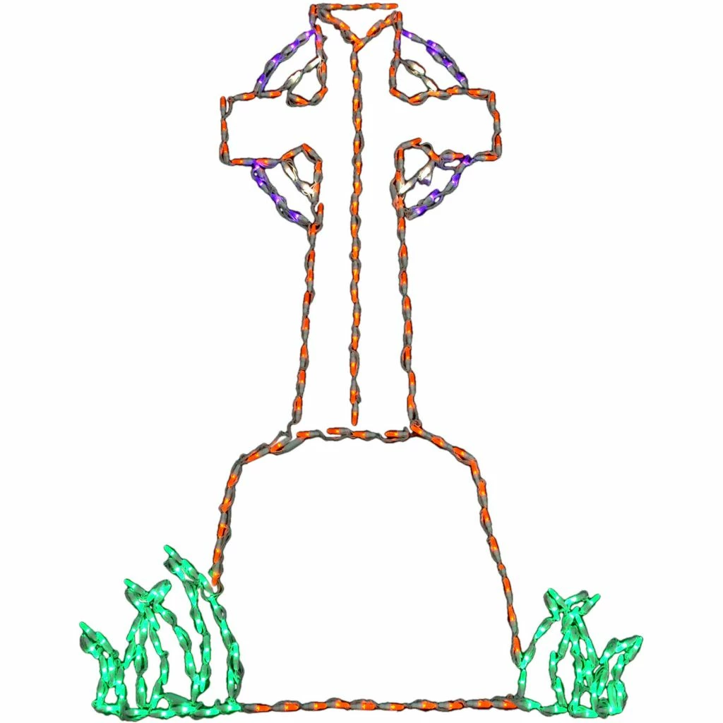 Haunted Hill Farm Cross Tombstone LED Light, Indoor/Outdoor Halloween Decor, 39 in. x 54 in.